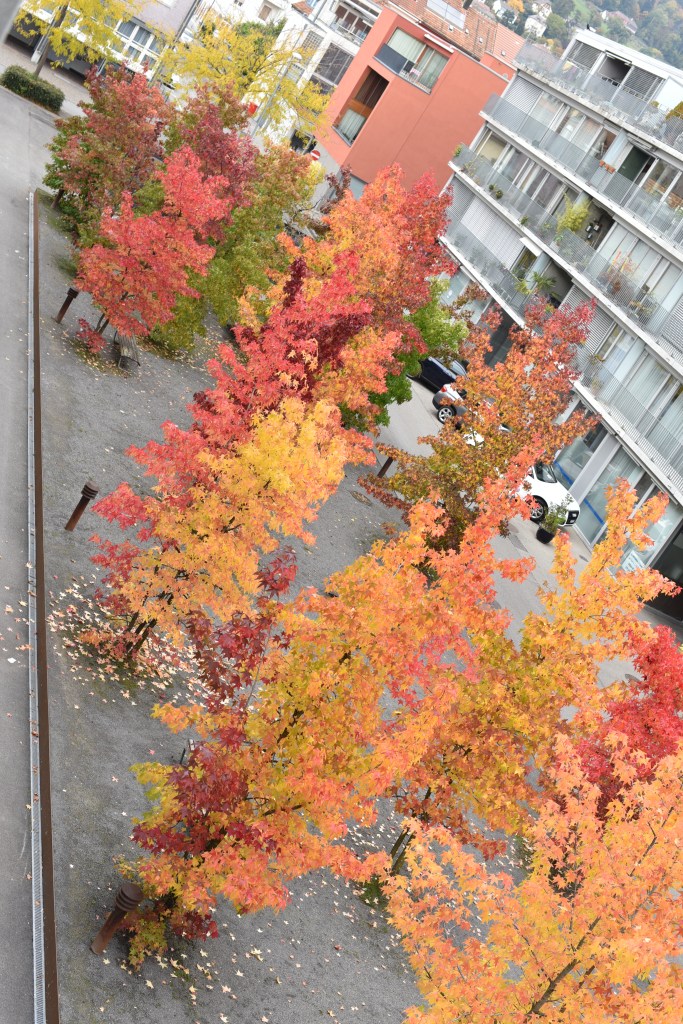 Vara a fost atât de secetoasă încât la un moment dat mi-a fost teamă că se vor usca. Dar apoi a venit septembrie cu destulă ploaie şi copăceii din faţa blocului şi-au revenit. Iar în octombrie au explodat în tonuri de auriu, arămiu, roşu… Din păcate nu ştiu destule culori, descoperiţi-le singuri!
